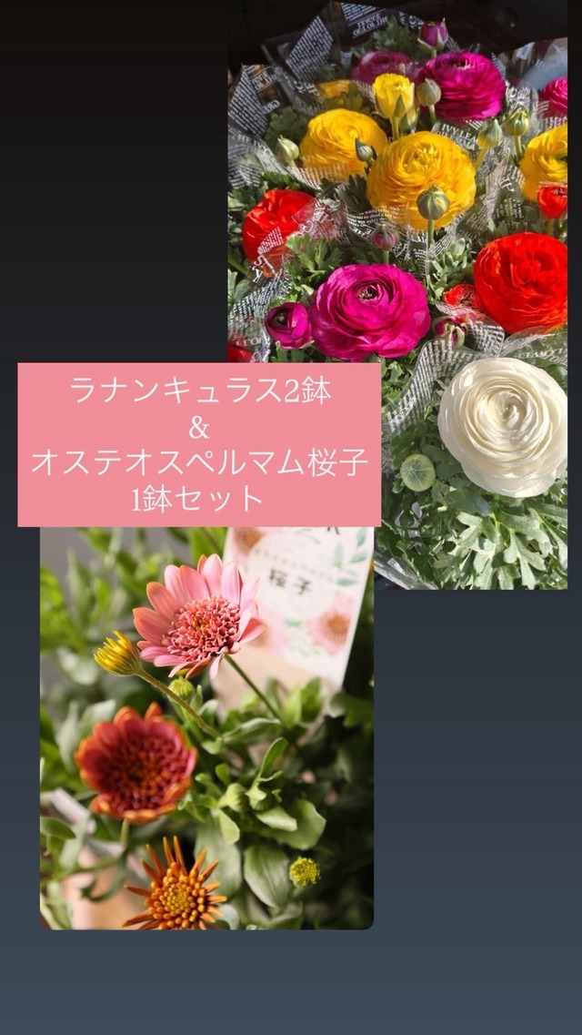 壮真さんの極上ラナンキュラス|2鉢《Aセット》&オステオスペルマム桜子|1鉢